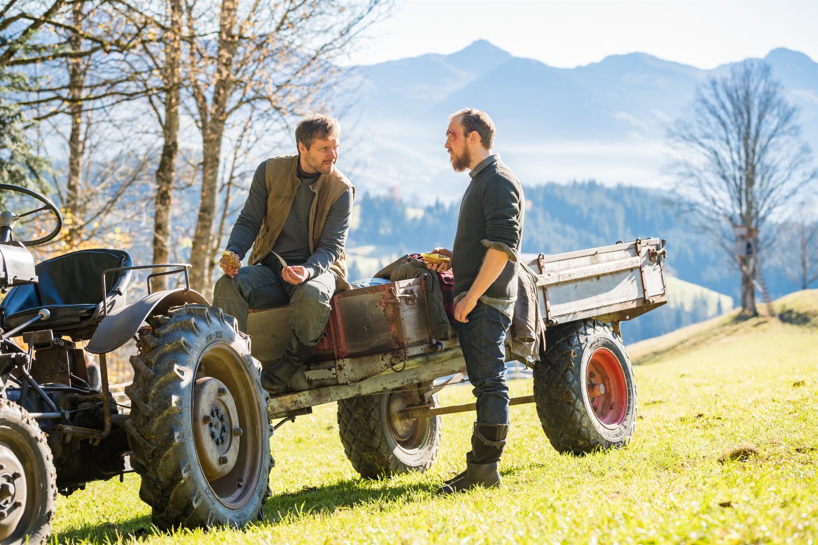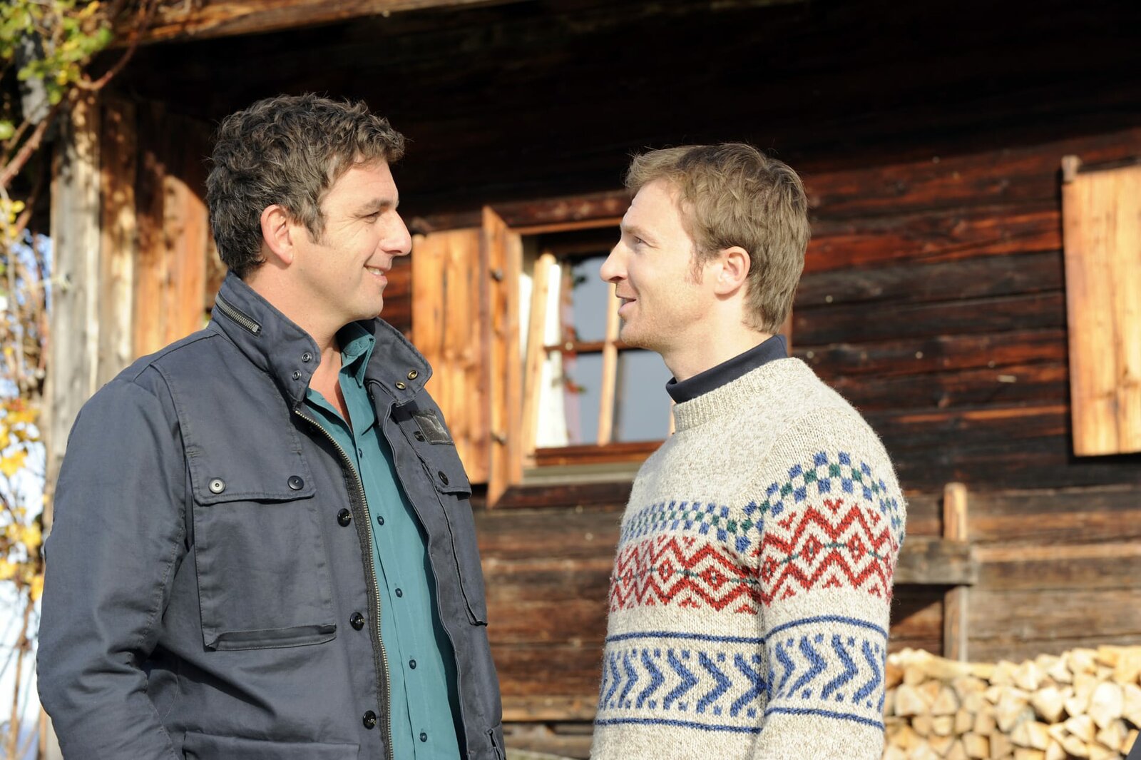 Auf Liebe und Tod - Teil 2: Auf Liebe und TodMartin (Hans Sigl, l.) und Hans (Heiko Ruprecht, r.) treffen sich morgens vor dem Gruberhof. Martin hat eine gute Nachricht erhalten und Hans hat sich zu einer Entscheidung durchgerungen.Bild: © ORF/ZDF/Thomas R. Schumann