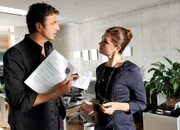 Die falsche Frau - Teil 1Die Streitereien sind vorbei. Hans (Heiko Ruprecht, r.) bittet Susanne (Natalie O'Hara, l.), sich die Finanzlage der "Mountain-Profis" anzusehen.Bild: © ZDF und Stefanie Leo