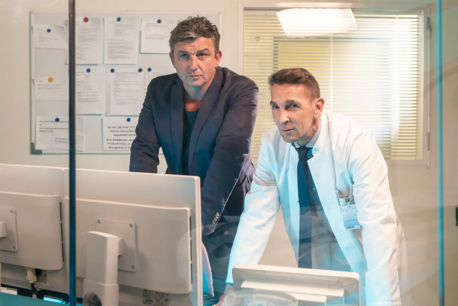 Ein ganzes Leben - Teil 1Dr. Gruber (Hans Sigl, l.) und Dr. Kahnweiler (Mark Keller, r.) haben eine schlimme Befürchtung, was ihren gemeinsamen Patienten betrifft.Bild: © ZDF und Andreas Mohaupt.