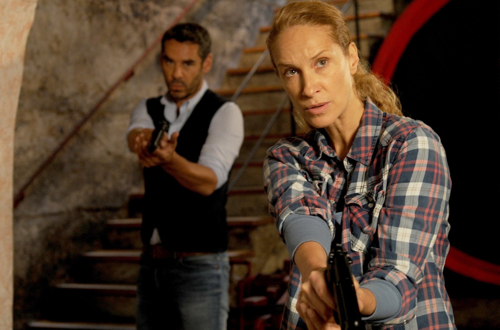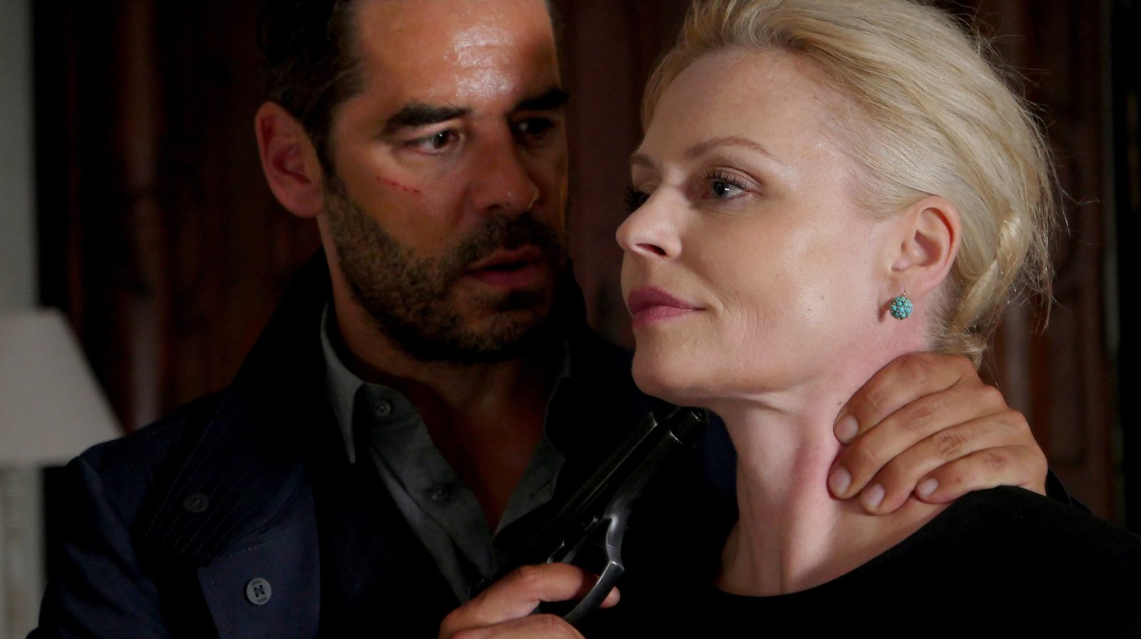 ARD Degeto DER BOZEN-KRIMI: MÖRDERISCHES SCHWEIGEN, am Donnerstag (19.09.19) um 20:15 Uhr und um 00:20 Uhr im ERSTEN. "Capo“ Matteo Zanchetti (Tobias Oertel) bedroht Mafia-Anwältin Giulia Santoro (Susanna Simon). © ARD Degeto/Hans-Joachim Pfeiffer, honorarfrei - Verwendung gemäß der AGB im engen inhaltlichen, redaktionellen Zusammenhang mit genannter Degeto-Sendung und bei Nennung "Bild: ARD Degeto/Hans-Joachim Pfeiffer" (S2+). ARD Degeto/Programmplanung und Presse, Tel: 069/1509-335, degeto-presse@degeto.de