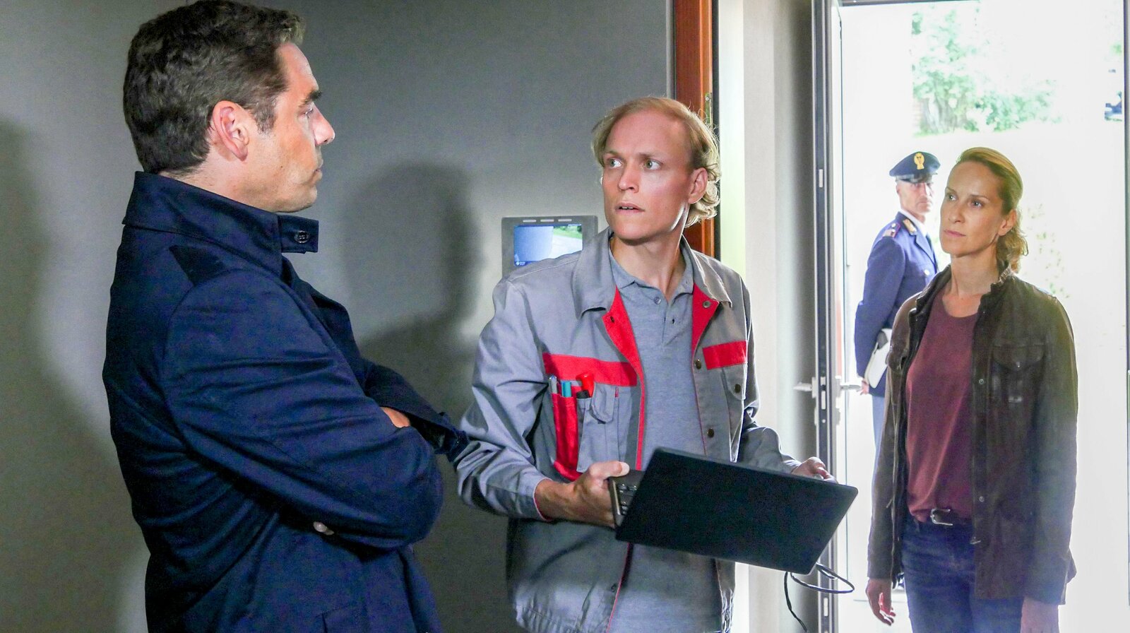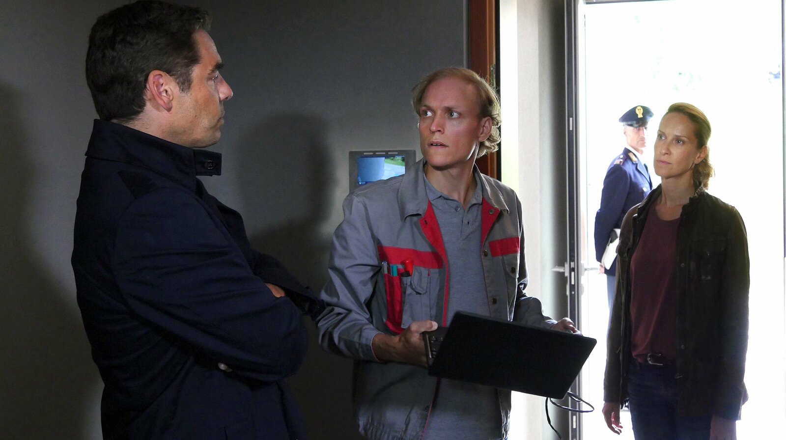 Warum war die Alarmanlage aus? Sonja (Chiara Schoras) und „Capo“ Matteo (Tobias Oertel, li.) verdächtigen Manuel Steinbrenner (Emanuel Fellmer).
