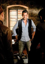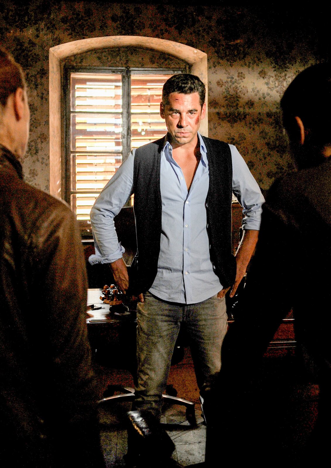 Der Mafiakiller Saffione (Murathan Muslu) sucht Francesco Rossi (Thomas Sarbacher) auf.