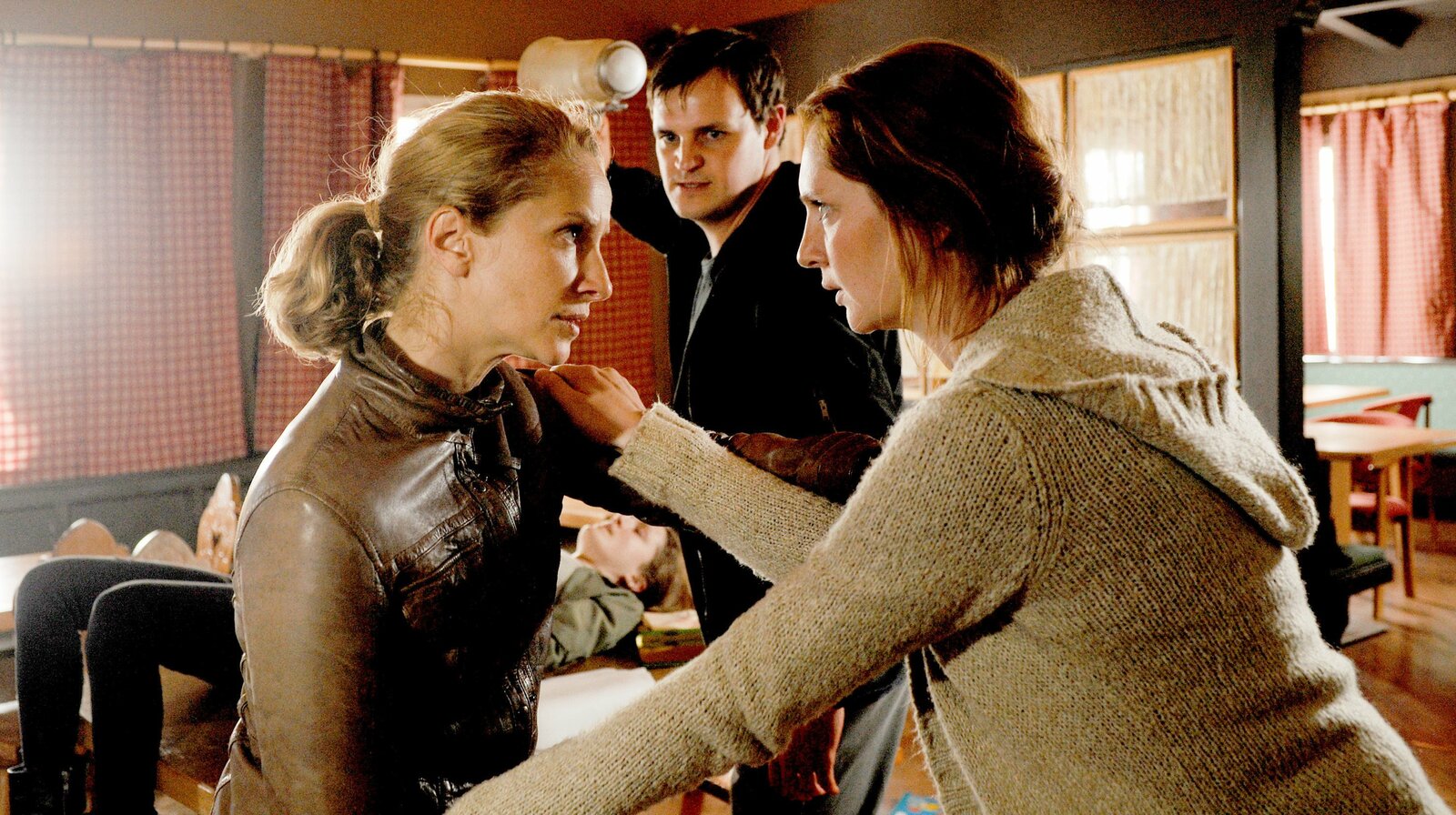 Kommissarin Sonja Schwarz (Chiara Schoras, links) ist nicht erfreut darüber, dass Carla Pisani (Jeanette Hain), eine Anti-Mafia-Ermittlerin aus Rom, unerwartet auftaucht.