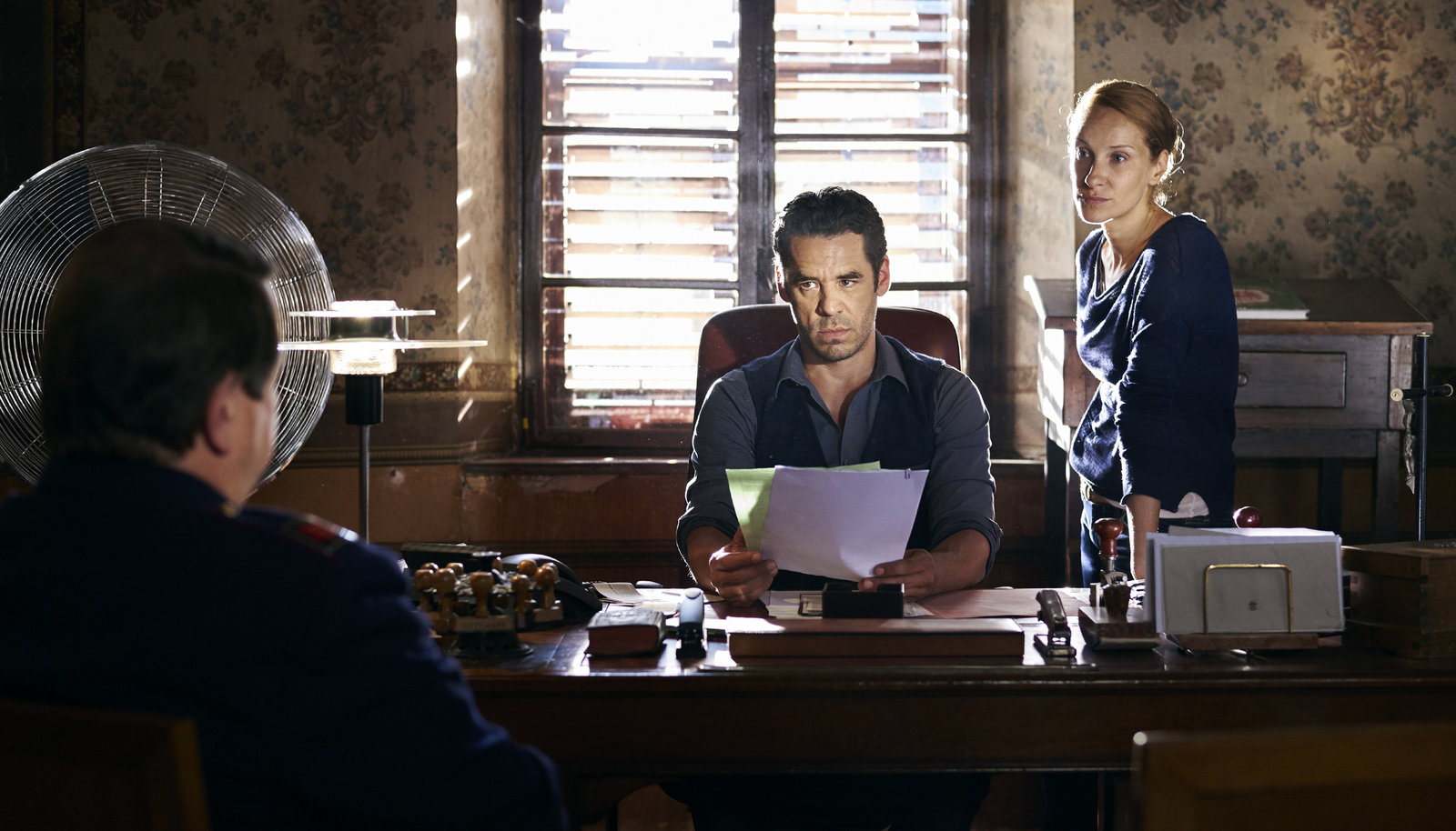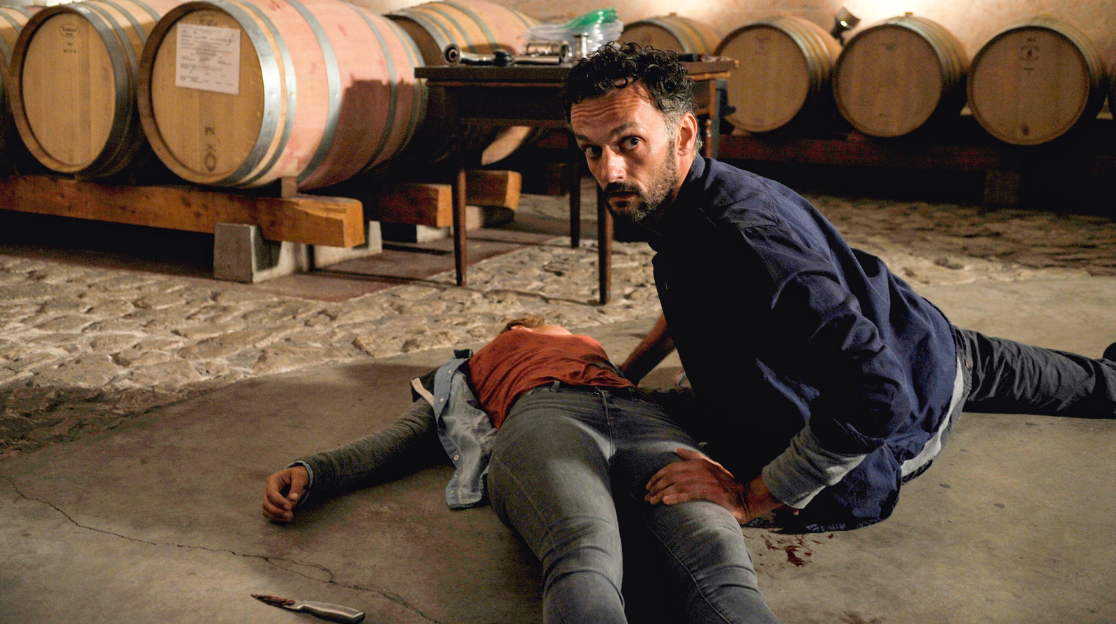 Gegen die ZeitDie verletzte Mafia-Anwältin Giulia Santoro (Susanna Simon) hinterlässt ein Zeichen an „Capo“ Matteo Zanchetti (Tobias Oertel) Hemd.Bild: © ARD Degeto/Hans-Joachim Pfeiffer