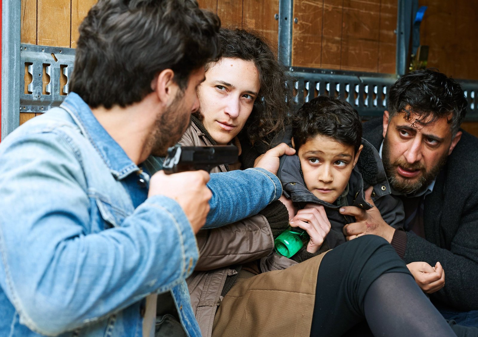 Wer ohne Spuren gehtDer Schlepper Luca Tardelli (Ricardo Angelini, li.) ist in eine Polizeikontrolle geraten und will nun Kadim (Kida Khodr Ramadan), seine Frau Meryem (Valentina Repetto) und deren Sohn Abu (Omar Safi) loswerden.Bild: © ORF2