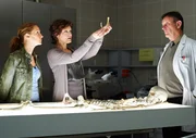 Wer ohne Spuren gehtProfessor Gamper (Markus Völlenklee), Spezialist für die Gletscherleiche Ötzi, erklärt der Gerichtsmedizinerin Chiara Bonetti (Marion Mitterhammer, Mitte) und der Kommissarin Sonja Schwarz (Chiara Schoras) einige Auffälligkeiten des gefundenen Skeletts.Bild: © ORF