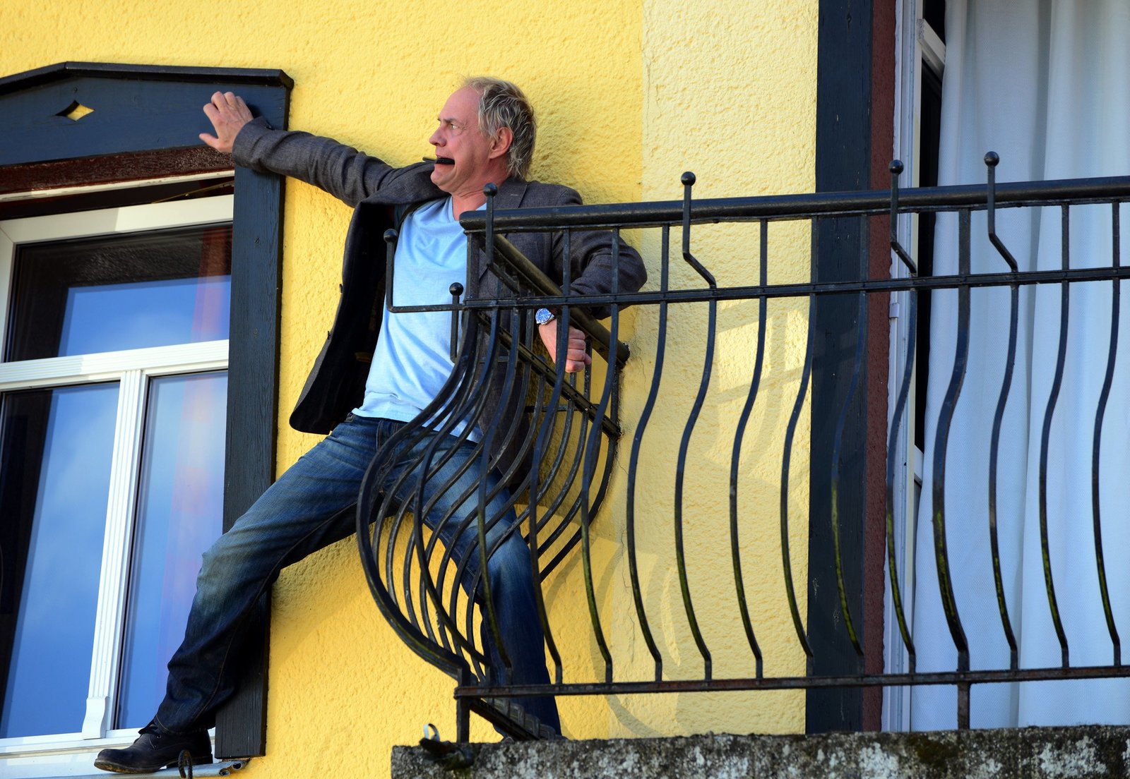 Von Mäusen, Miezen und MonetenARD/SWR DER BULLE UND DAS LANDEI - VON MÄUSEN, MIEZEN UND MONETEN, Deutschland 2014, Regie Vivian Naefe, Buch Uwe Kosmann und Markus Hoffmann, am Donnerstag (03.04.14) um 20:15 Uhr und um 00:20 Uhr im Ersten Fast wäre Killmer (Uwe Ochsenknecht) bei einem Einbruch erwischt worden. Doch er versucht, sich durch ein waghalsiges Manöver zu retten.Bild: © ARD Degeto/SWR/Christiane Pausch