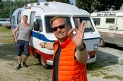 Gebrauchtkauf & SchwimmcaravanFriso Richter (vorne) mit Michael Baum mit seinem Camper Oltimer.Bild: © HR/Lukas Lowack