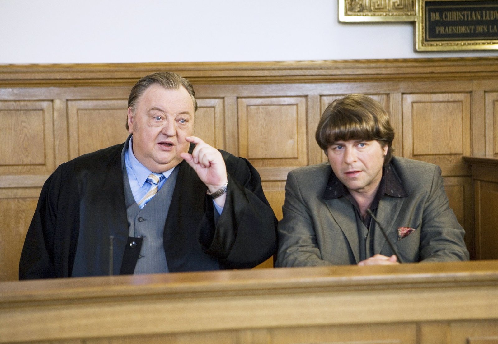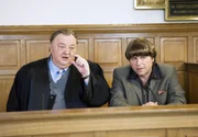 GlaubensfragenNDR Fernsehen DER DICKE, "Glaubensfragen", am Montag (14.11.11) um 21:00 Uhr. Vor Gericht: Ehrenberg (Dieter Pfaff, l.) vertritt den prominenten Schlagersänger Michael Michelsen (Uwe Fellensiek, r.).Bild: © NDR/ARD/Georges Pauly