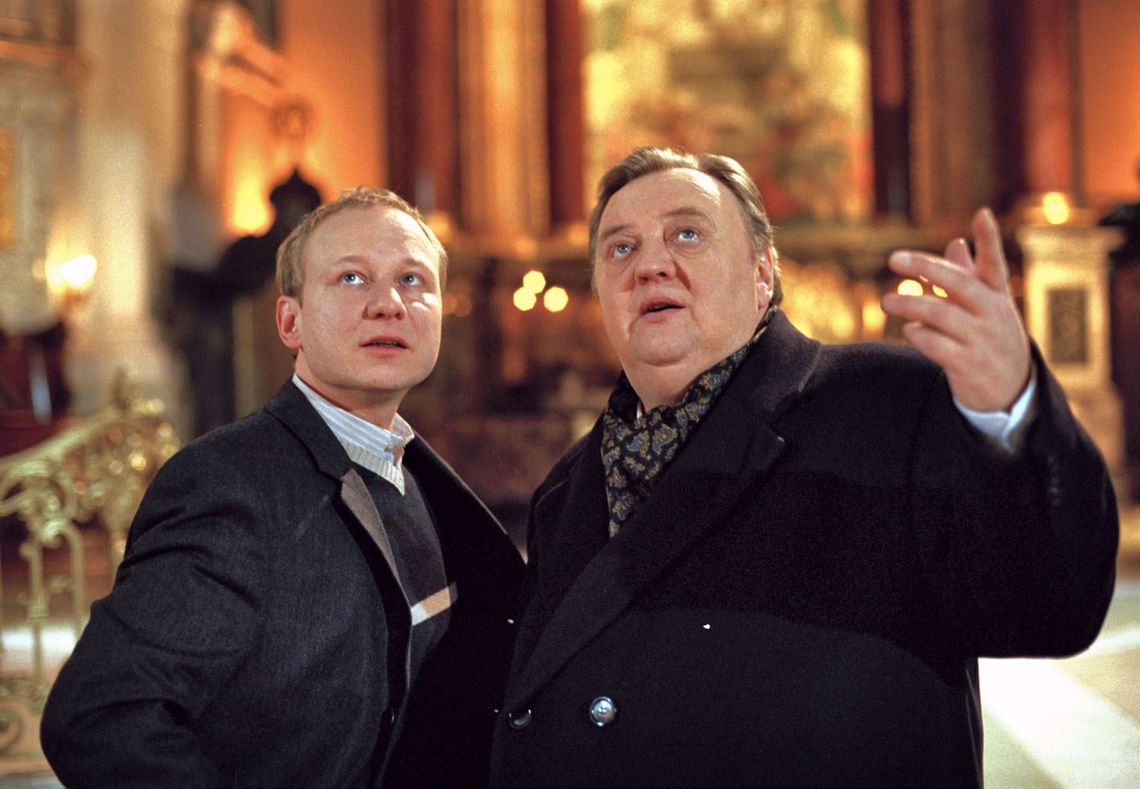 Die Nummer 1Gregor Ehrenberg (Dieter Pfaff , r.) will vom Sakristan im Michel (Christopher Zumbült, l.) wissen, wer die Orgel spielt.Bild: © HR/ARD/Marion von der Mehden