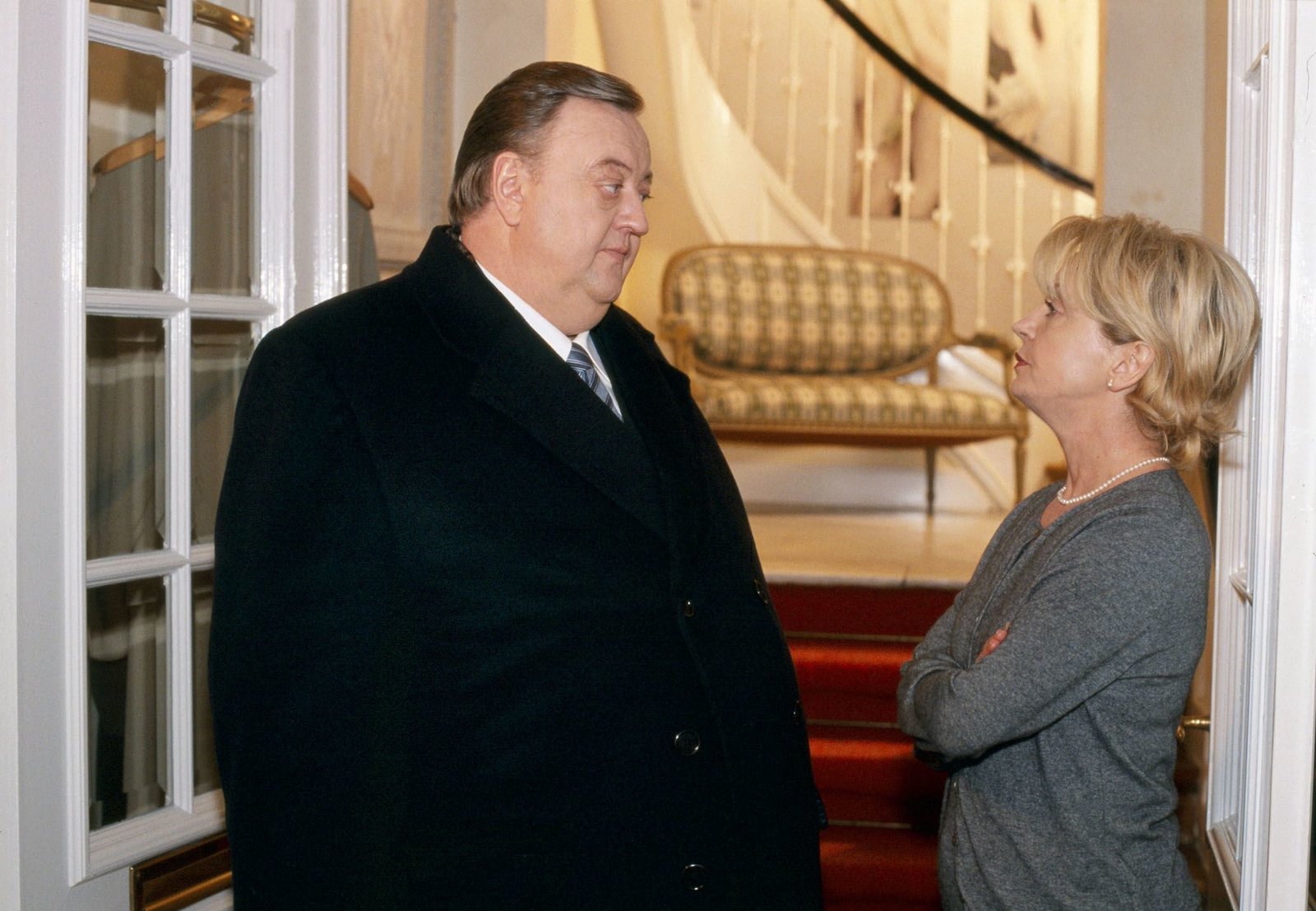 Wirre ZeitenMDR Fernsehen DER DICKE IV. STAFFEL FOLGE 48, "Wirre Zeiten", am Sonntag (07.04.13) um 13.10 Uhr. Gregor Ehrenberg (Dieter Pfaff, l.) soll im Auftrag von Dora Grewe ihre Mutter Magda (Andrea l'Arronge, r.) vor einem Heiratsschwindler warnen.Bild: © MDR/Georges Pauly