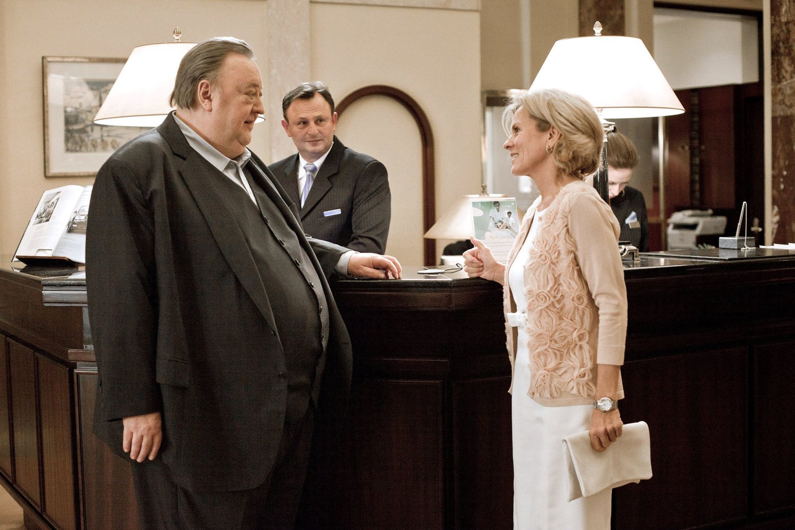Gefährliches SpielARD DER DICKE, "Gefährliches Spiel", am Freitag (27.06.14) um 18:50 Uhr im ERSTEN. Wird Gregor Ehrenberg (Dieter Pfaff, r.) Isabel von Brede (Sabine Postel, l.) die Partnerschaft in seiner Kanzlei anbieten?Bild: © ARD/Georges Pauly