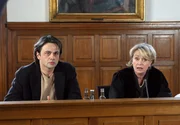 Getrennte Wege15 Uhr im Ersten. Wieder einmal sind Christina Ehrenberg (Gisela Schneeberger, r.) und Gregor Gegner vor Gericht. Christina verteidigt Jens Illner (Michael Rotschopf, l.), den Ex-Mann von Ehrenbergs Mandantin.Bild: © ARD/Georges Pauly