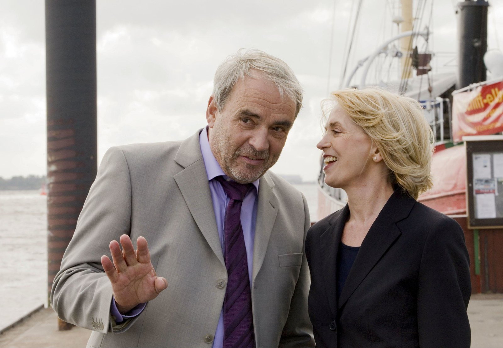 Getrennte WegeNDR Fernsehen DER DICKE, "Getrennte Wege", am Montag (08.08.11) um 21:00 Uhr. Gregor Ehrenberg (Dieter Pfaff, l.) fällt es schwer, seiner Sybille Illner (Valerie Koch, r.) zu glauben.Bild: © ARD/Georges Pauly