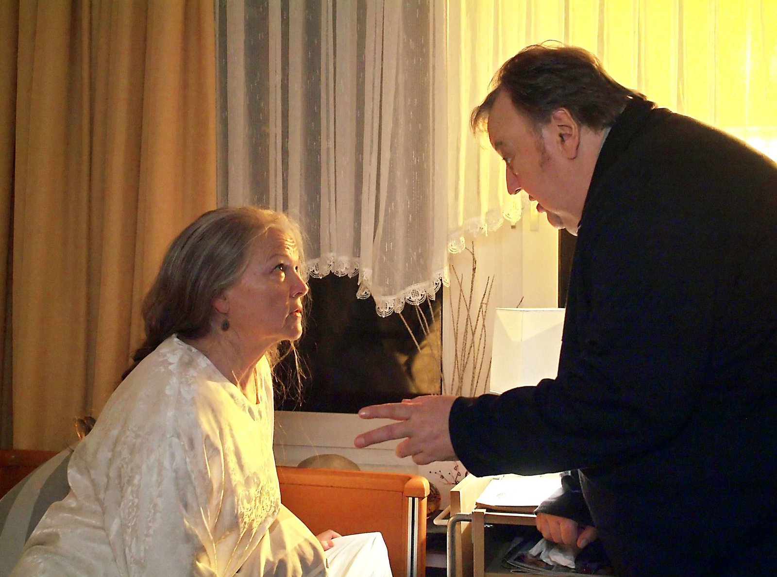 Schlafende HundeNDR Fernsehen DER DICKE, "Schlafende Hunde", am Montag (22.08.11) um 21:00 Uhr. Marianne Weden (Eva-Maria Hagen) bestätigt Gregor Ehrenbergs (Dieter Pfaff, r.) Vermutung, dass im Altenheim alte Menschen mißhandelt werden.Bild: © NDR/ARD/Georges Pauly