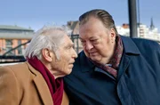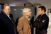 Gefährliche SucheDer Besuch seines Vaters Magnus (Jürgen Goslar, M.) entwickelt sich für Gregor Ehrenberg (Dieter Pfaff, l.) zu einer schweren Belastungsprobe. Auch Gerd Wohlers (Josef Heynert, r.) wundert sich über das seltsame Verhalten des alten Herrn.Bild: © ARD/Georges Pauly