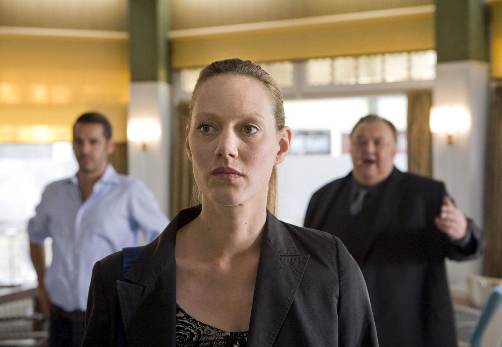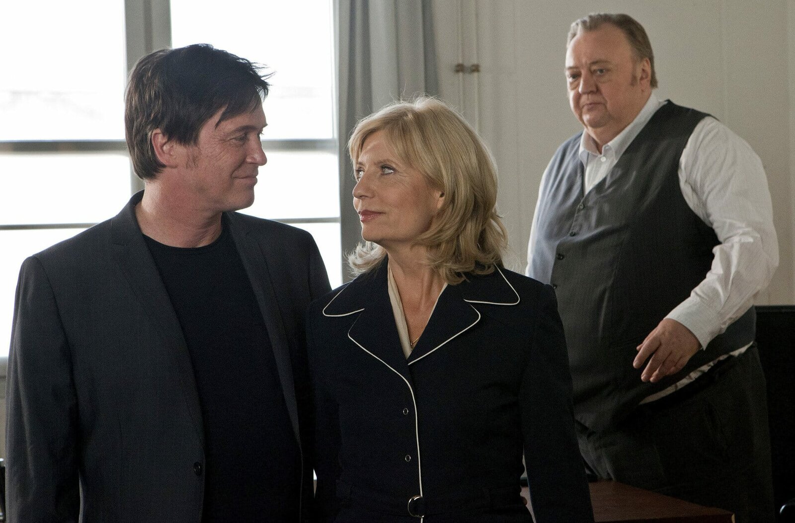 Zwischen den StühlenNDR Fernsehen DER DICKE, "Zwischen den Stühlen", am Montag (17.10.11) um 21:00 Uhr. Illegale Auslandsadoption? Gregor Ehrenberg (Dieter Pfaff, r.) und Adoptivvater Kurt Bentheim (Tobias Oertel, l.) versuchen die Beamtin vom Jugendamt Monika Finke (Anna Schudt, M.) davon zu überzeugen, dass die kleine Laura bei ihren Adoptiveltern bleiben darf.Bild: © NDR/ARD/Georges Pauly