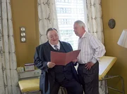 Falsche FährtenGregor Ehrenberg (Dieter Pfaff, l.) amüsiert sich über Dr. Wilhelmy (Harald Maack, r.) ärztlichen Befund.Bild: © NDR/ARD/Georges Pauly