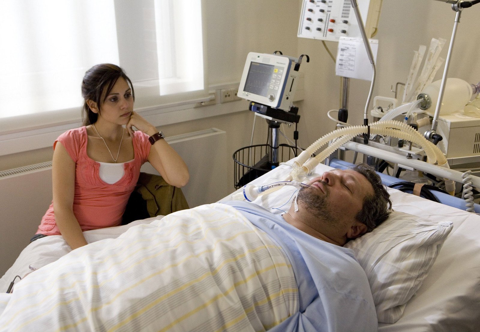 Voll ins HerzYasmin (Sophie Dal, l.) wacht am Krankenbett ihres Vaters (Aykut Kayacik, r.). Er hat einen Herzinfarkt erlitten.Bild: © NDR/ARD/Georges Pauly