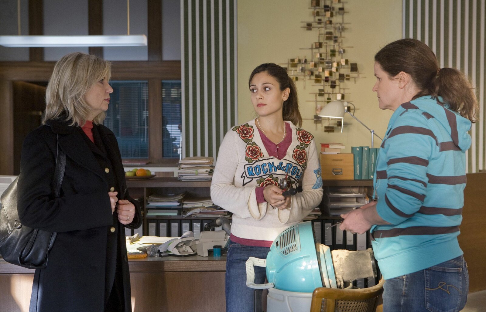 Spiel mit dem FeuerMDR Fernsehen DER DICKE III. STAFFEL FOLGE 34, "Spiel mit dem Feuer", am Samstag (17.03.12) um 11:05 Uhr. Nachbarschaftsstreit direkt vor der Anwaltskanzlei: Isabel von Brede (Sabine Postel, l.) zählt auf die Hilfe von Yasmin (Sophie Dal, M.) und Gudrun (Katrin Pollitt, r.)Bild: © MDR/Georges Pauly