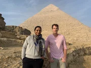 TutmaniaArchäologin Raksha Dave und Historiker Dan Snow vor der Chephren-Pyramide.Bild: © BR/Voltage TV/Amanda Lyon