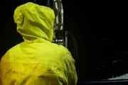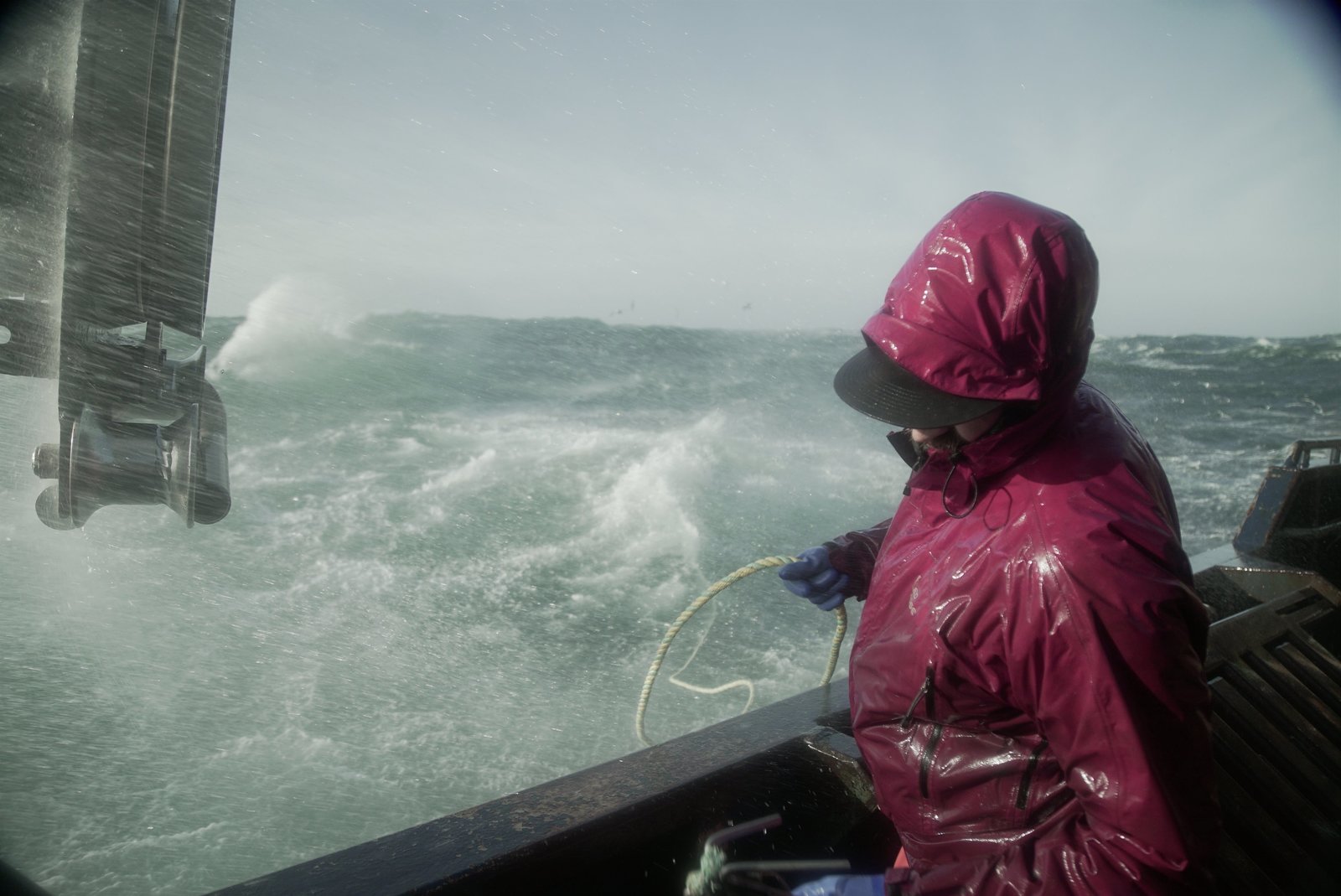 Ärger mit dem AnkerZack Larson, Engineer on the Brenna A, tries to dodge the spray of a messy sea.Bild: © Discovery Channel / Discovery Communications