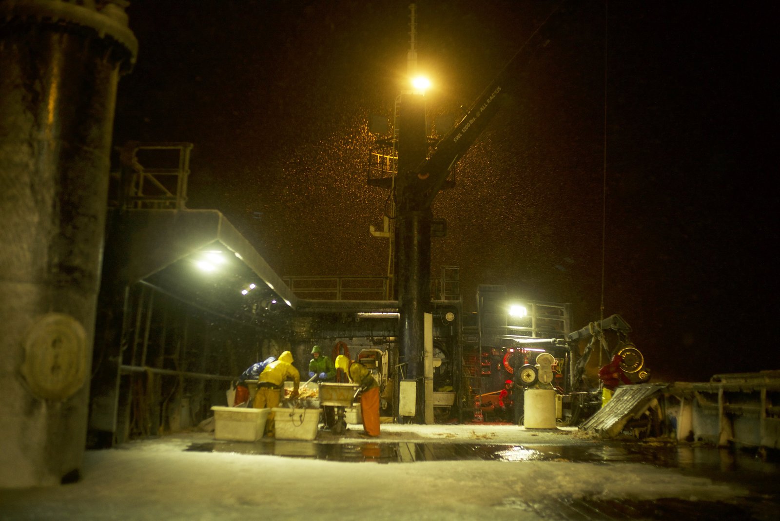 Tiefer FallCaptain Keith Colburns crew sorts opilio crab on the ice covered Wizard.Bild: © Discovery Channel / Discovery Communications