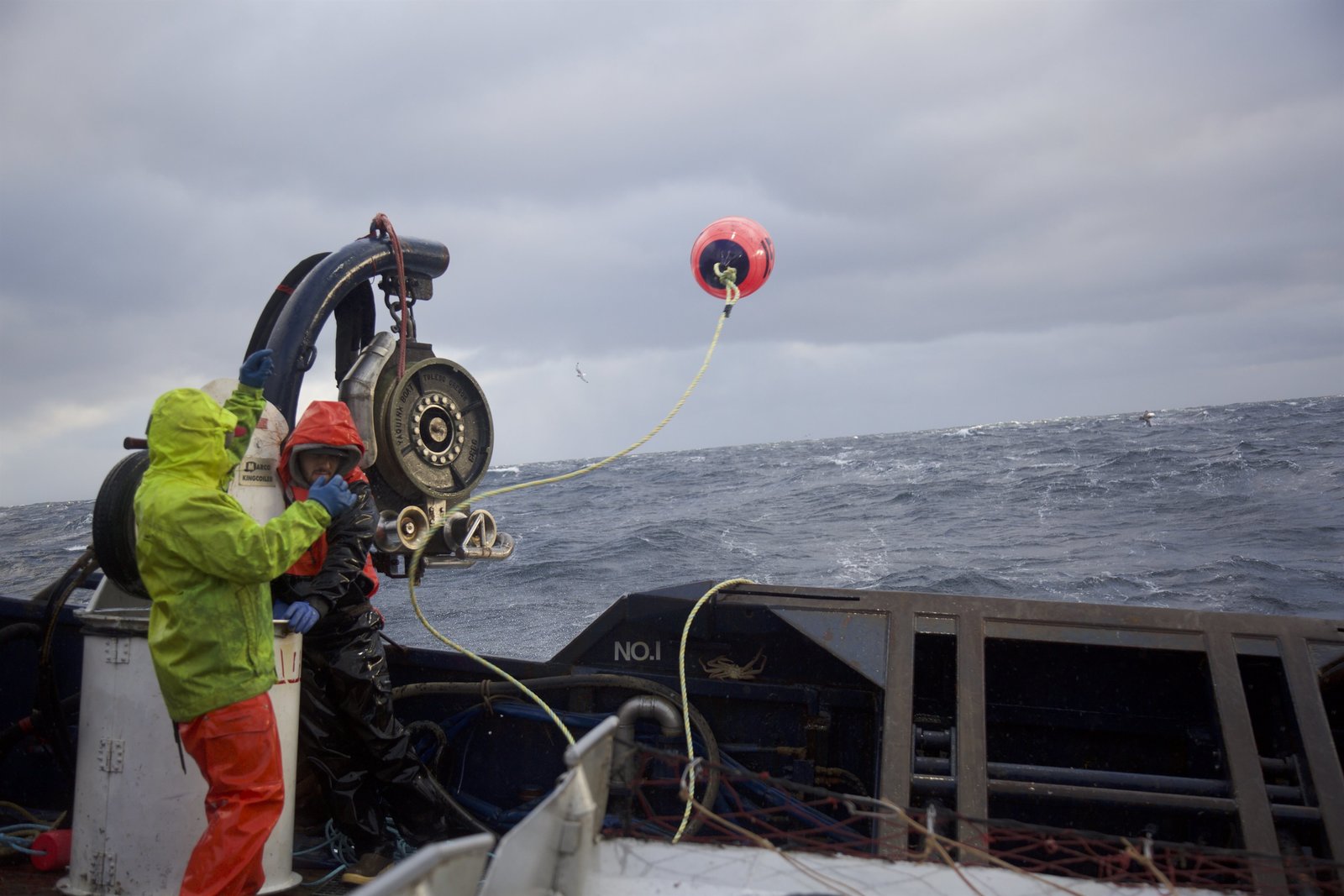Skipper verzweifelt gesuchtThe crew for the Saga drops a pot and one deckhand throws the buoy.Bild: © Discovery Channel / Discovery Communications