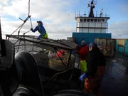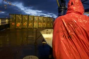 Wenn das Meer sich erwärmtSeen from the wheelhouse, the crew of the Summer Bay hauls gear.Bild: © DMAX