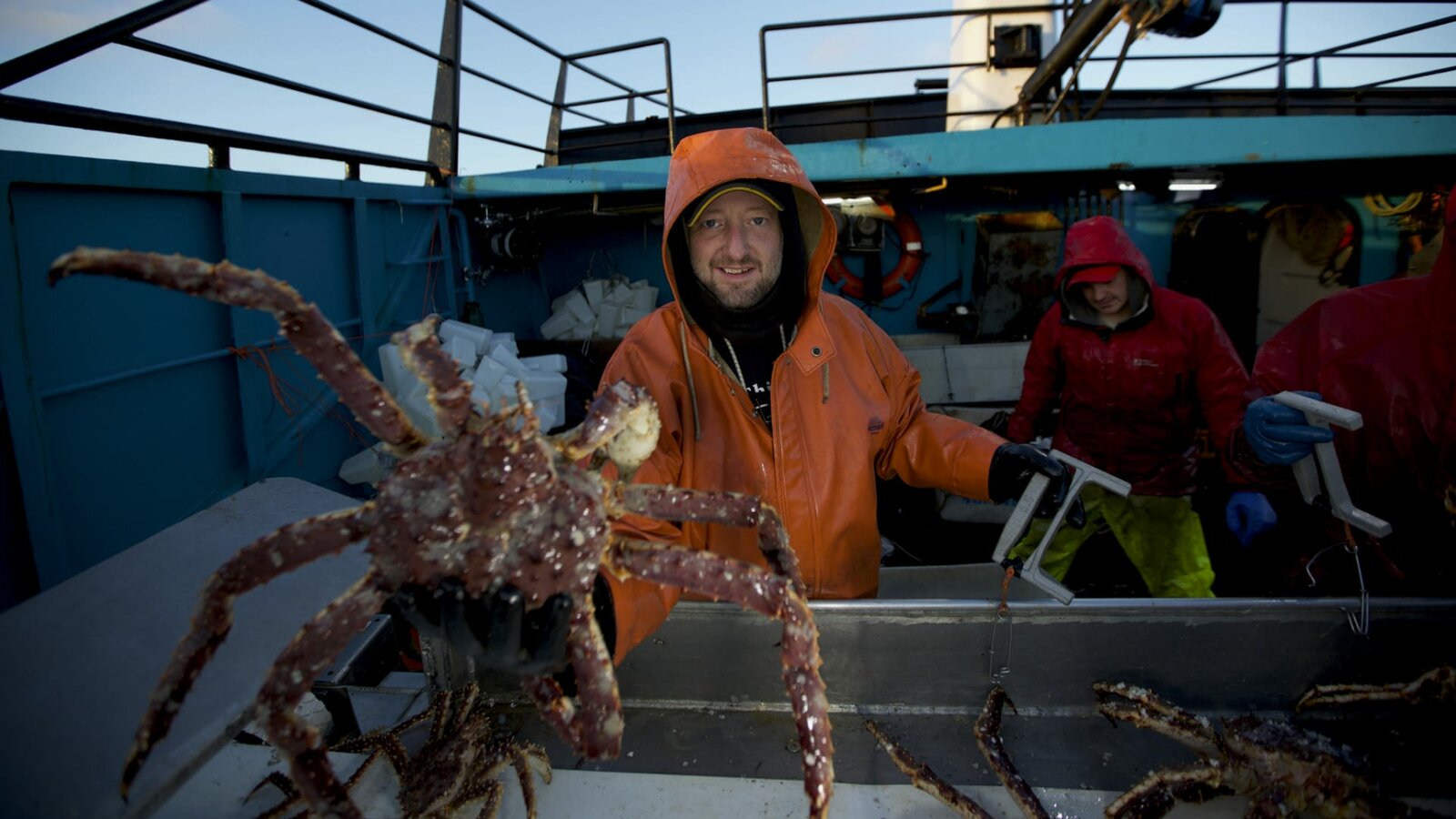 Blut und StiefelstressDeckhands on the Cornelia Marie sift through crab on the sorting table.Bild: © Discovery Channel / Discovery Communications