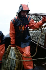 Eine Frage des RespektsThe Brenna A crew preps a pot to go back out in rough weather.Bild: © Discovery Channel / Discovery Communications
