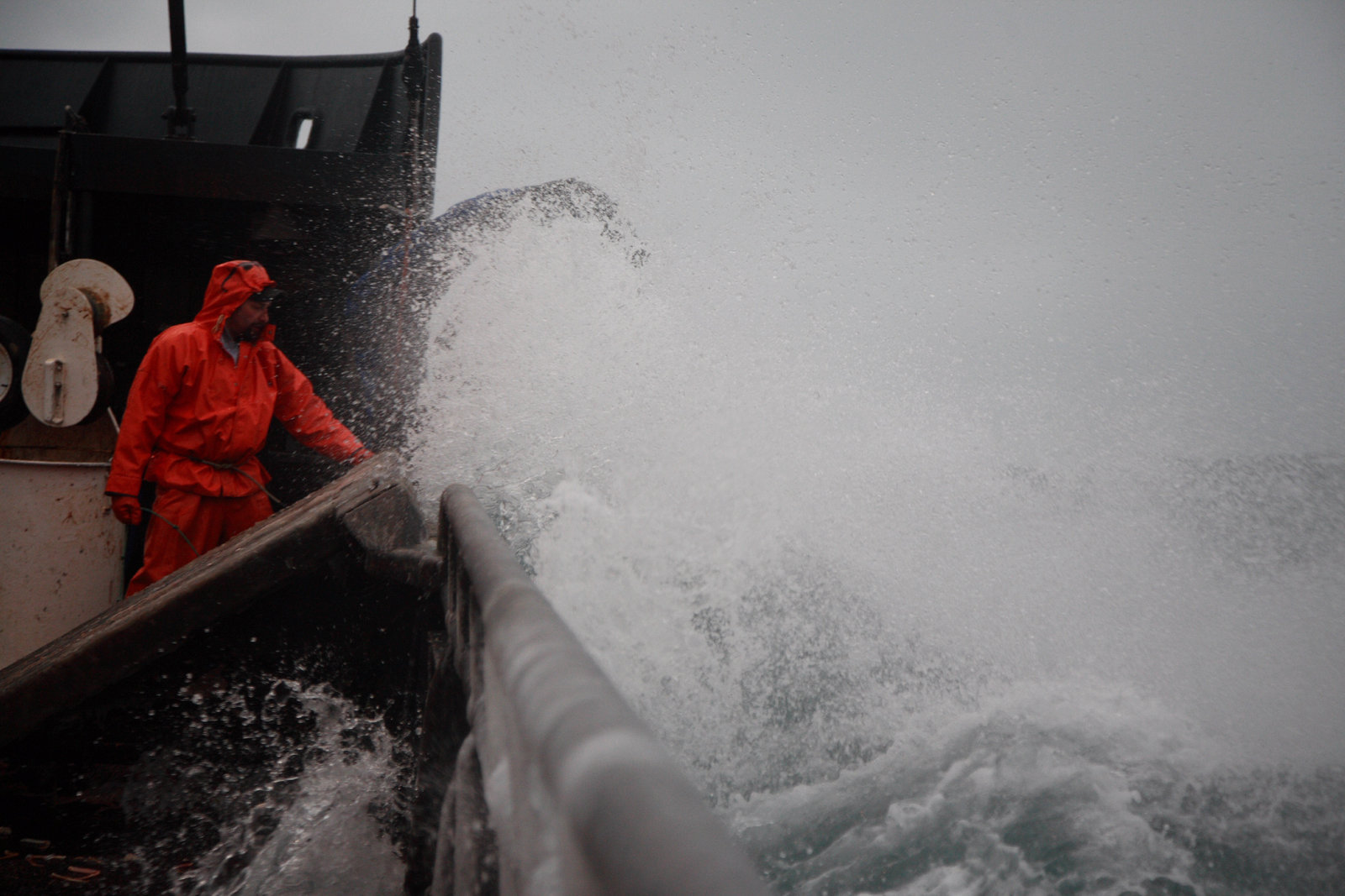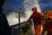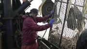 Kampf mit dem HurrikanDeckhand, Ronnie James, hard at work through unkind weather, aboard F/V Summer Bay.Bild: © Discovery Channel / Discovery Communications