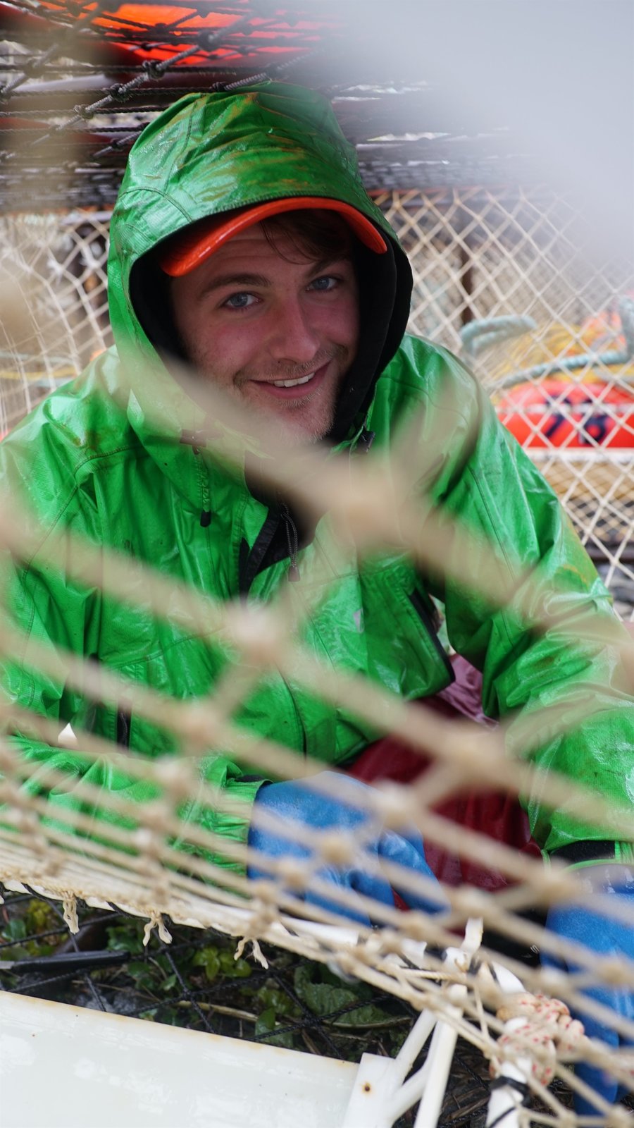 Sturz in die BeringseeSpencer Moore, Deckhand on the Summer Bay, fixes the netting of a pot.Bild: © Discovery Channel / Discovery Communications
