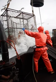 Lieferung auf hoher SeeAn iced up Lady Alaska pulling up a pot in ice cold rains.Bild: © Discovery Communications, LLC / Discovery Channel