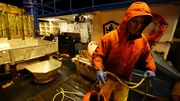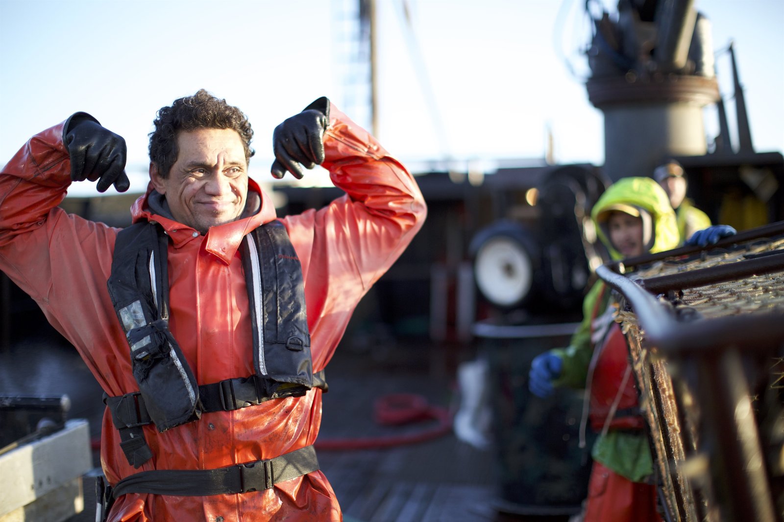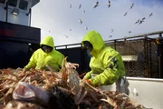 Wellen von allen SeitenVeteran deckhand Crosby Leveen is hard at work at the Wizard sorting table.Bild: © Discovery Communications
