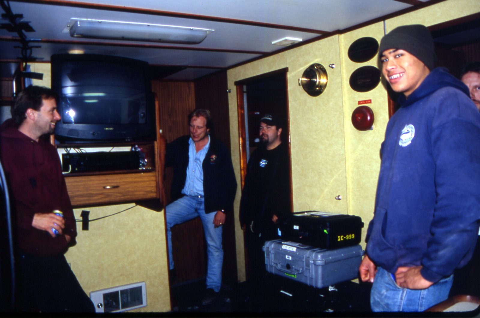 Schiff im DunkelnEngineer Roger Schlosstein looking happy on deck aboard the Wizard.Bild: © Discovery Communications, LLC / Jeremy Baron