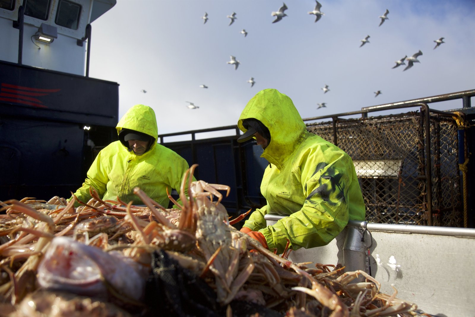 Nicht kaputt zu kriegenThe crew of the Southern Wind sorts their large opilio catch.Bild: © Discovery Communications, LLC