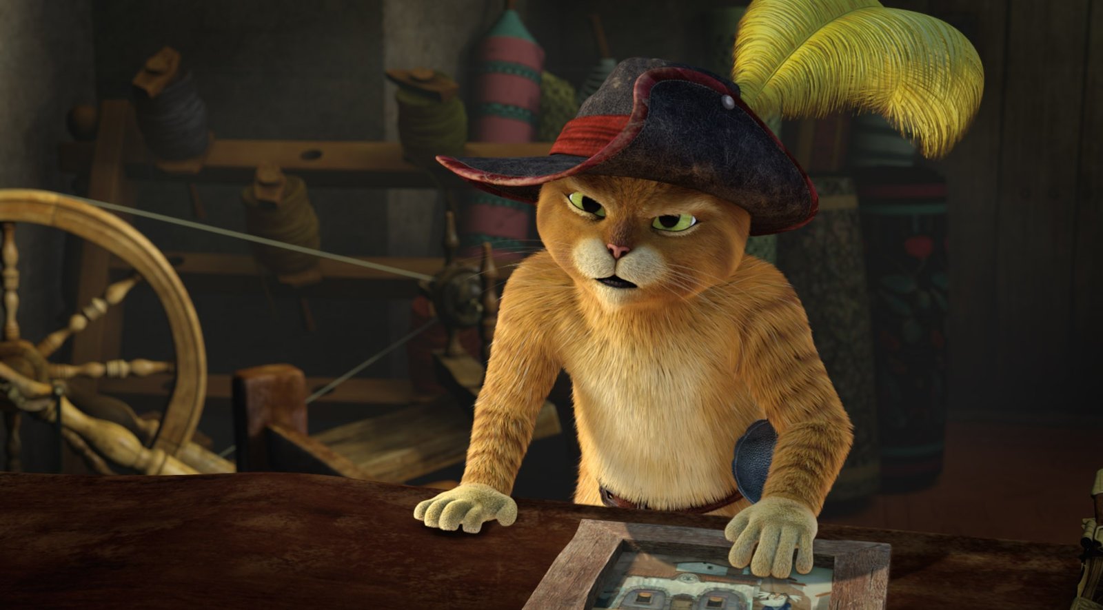 Sinos SchriftrolleDer gestiefelte Kater entwickelt einen Plan, wie er die Stadt vor El Moco und seiner Armee schützen kann.Bild: © DreamWorks Animation