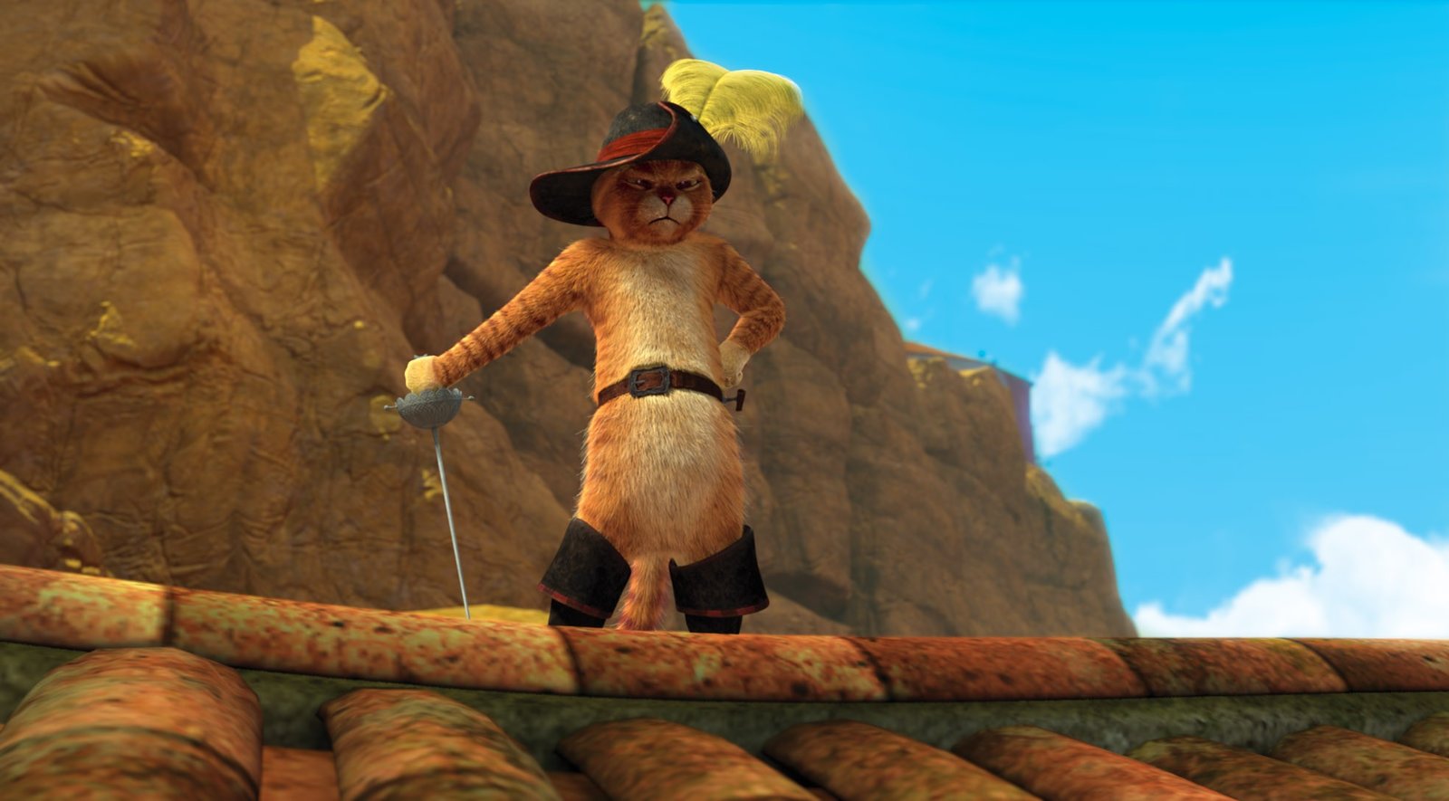 Tapferer BürgermeisterDer gestiefelte Kater ist ein frecher Halunke, der von sich selbst und seinen Fechtkünsten überzeugt ist. Doch wenn es darauf ankommt, kann man auf den mutigen Kater zählen.Bild: © DreamWorks Animation