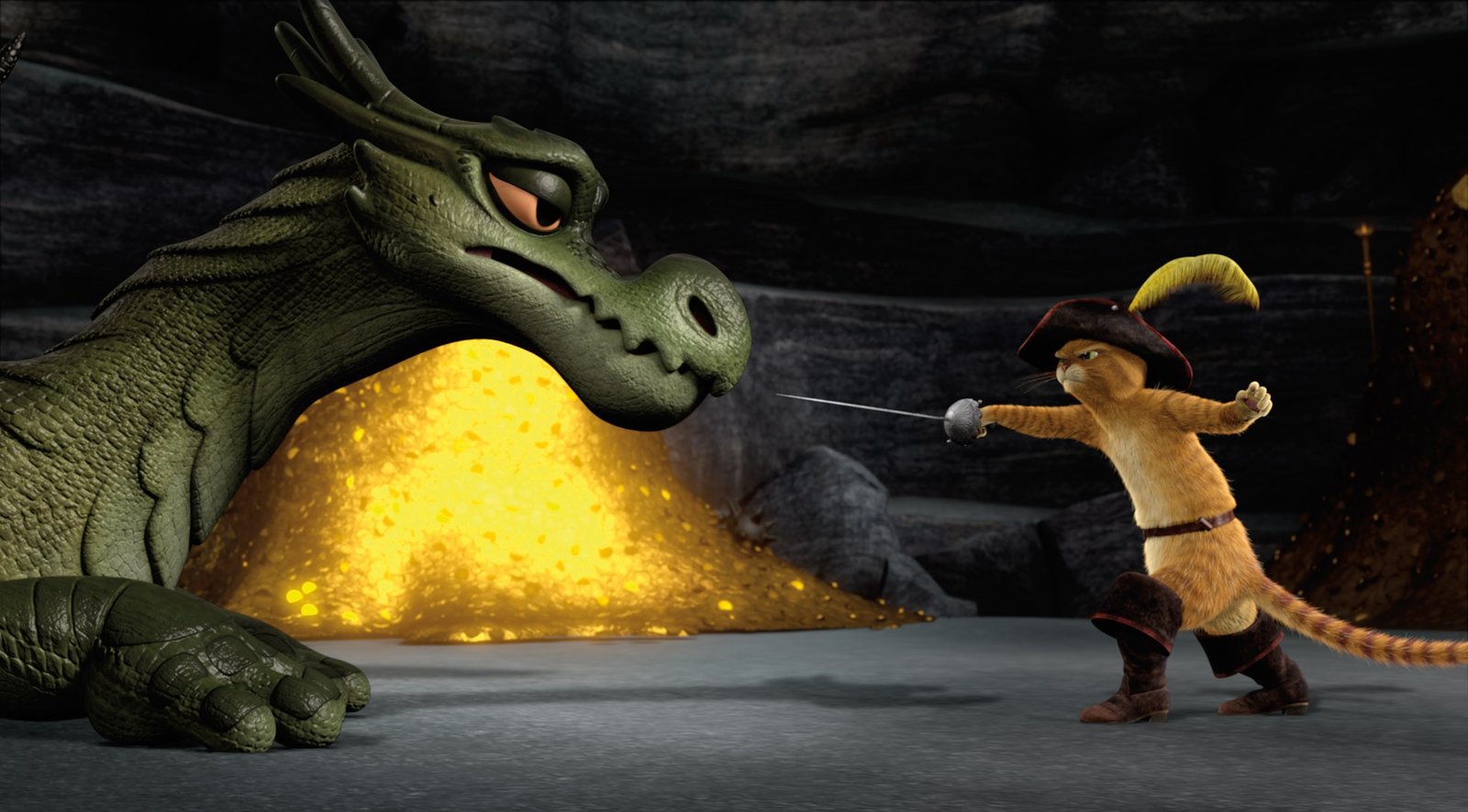 Glück im UnglückDer gestiefelte Kater ist ein frecher Halunke, der von sich selbst und seinen Fechtkünsten überzeugt ist. Doch wenn es darauf ankommt, kann man auf den mutigen Kater zählen.Bild: © DreamWorks Animation