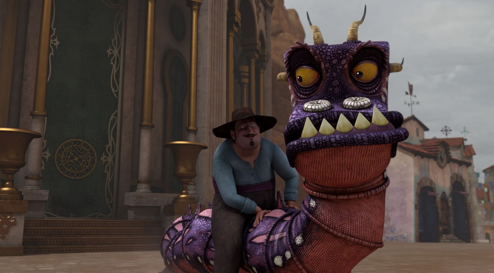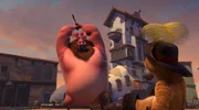 Der GolemIn San Lorenzo riecht es plötzlich überall nach Zimt. Der gestiefelte Kater weiß sofort, was das zu bedeuten hat. Der Golem, ein riesiges Monster aus Lehm, ist ganz in der Nähe.Bild: © DreamWorks Animation