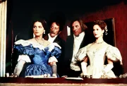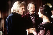Teil 2Erstes Wiedersehen zwischen Edmond Dantès alias Graf von Monte Christo (Gérard Depardieu, l.) und seiner ehemaligen Verlobten, der Gräfin de Morcerf (Ornella Muti). Der Graf de Morcerf (Jean Rochefort) bemerkt die Spannung zwischen den beiden.Bild: © Kineos