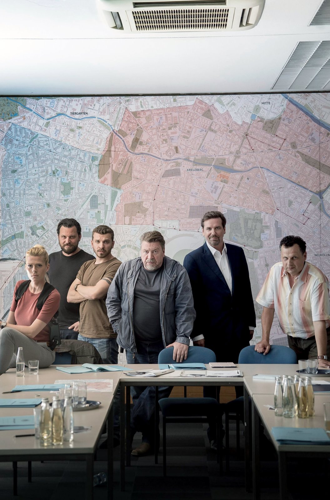 Friss oder stirbDas Ermittlungsteam (v.l.): Lola Karras (Nele Kiper), Axel Gondorf (Sascha Alexander Gersak), Milan Filipovic (Edin Hasanovic), Fredo Schulz (Armin Rohde), Simon Kowalski (Michael Maertens) und Oscar Stambouli (Gerhard Wittmann)Bild: © arte