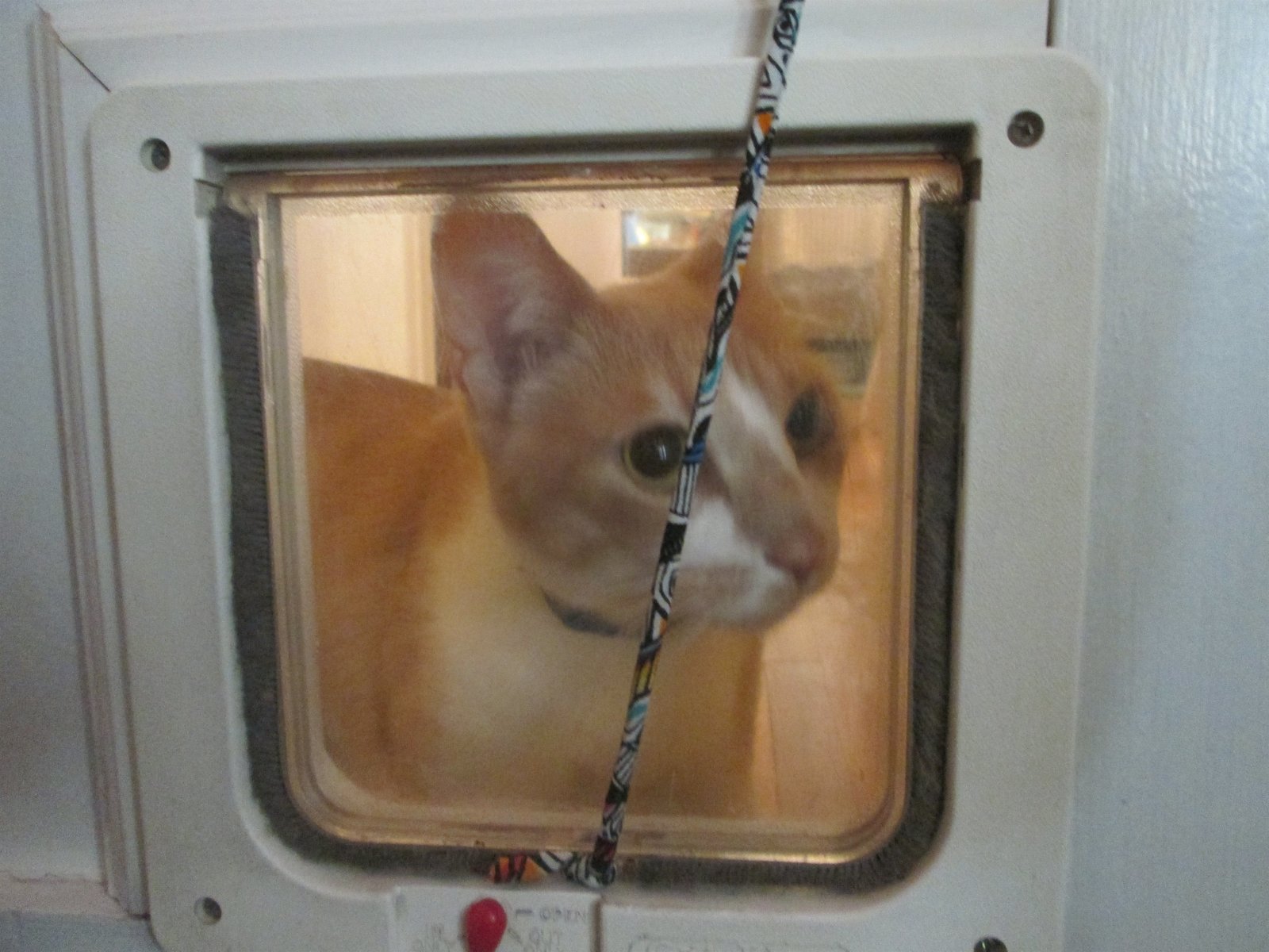 Die vierbeinige PinkelmaschineThe cat seen through the cat door.Bild: © Discovery Communications