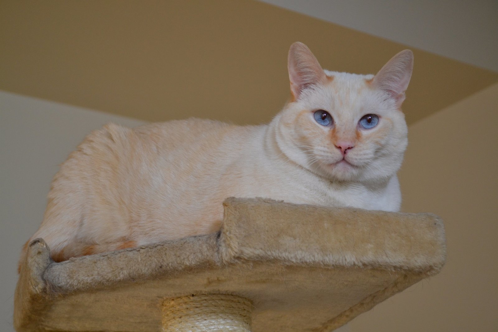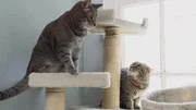 Ein wilder SchotteRed sitting on top of cat furniture in the house.Bild: © Animal Planet