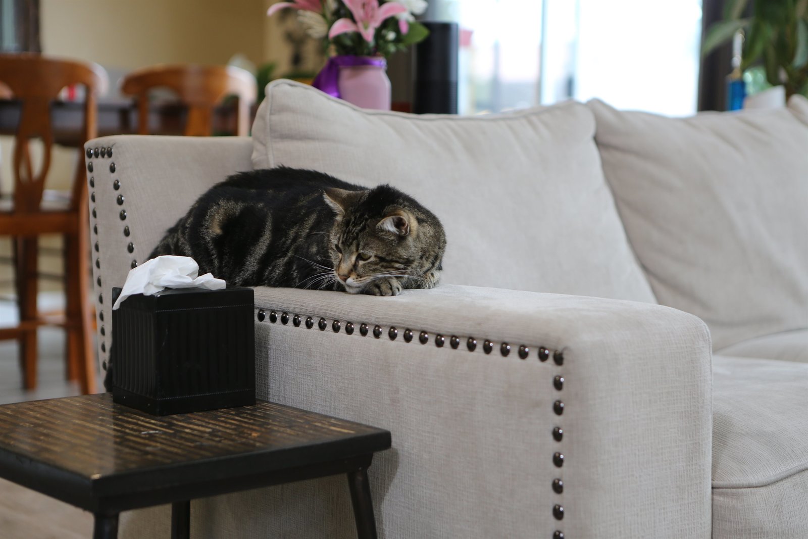Nächtlicher KatzenterrorTara laying on the couch arm.Bild: © Animal Planet / Discovery Communications