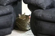 Zunge rein, Albert!Shadow the cat sneaking around the corner in the home.Bild: © Discovery Communications