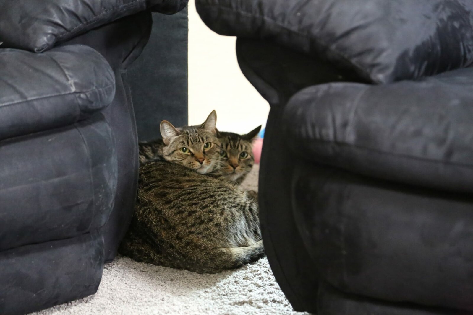 Lily und der TeppichCats on each side of the divider.Bild: © Discovery Communications