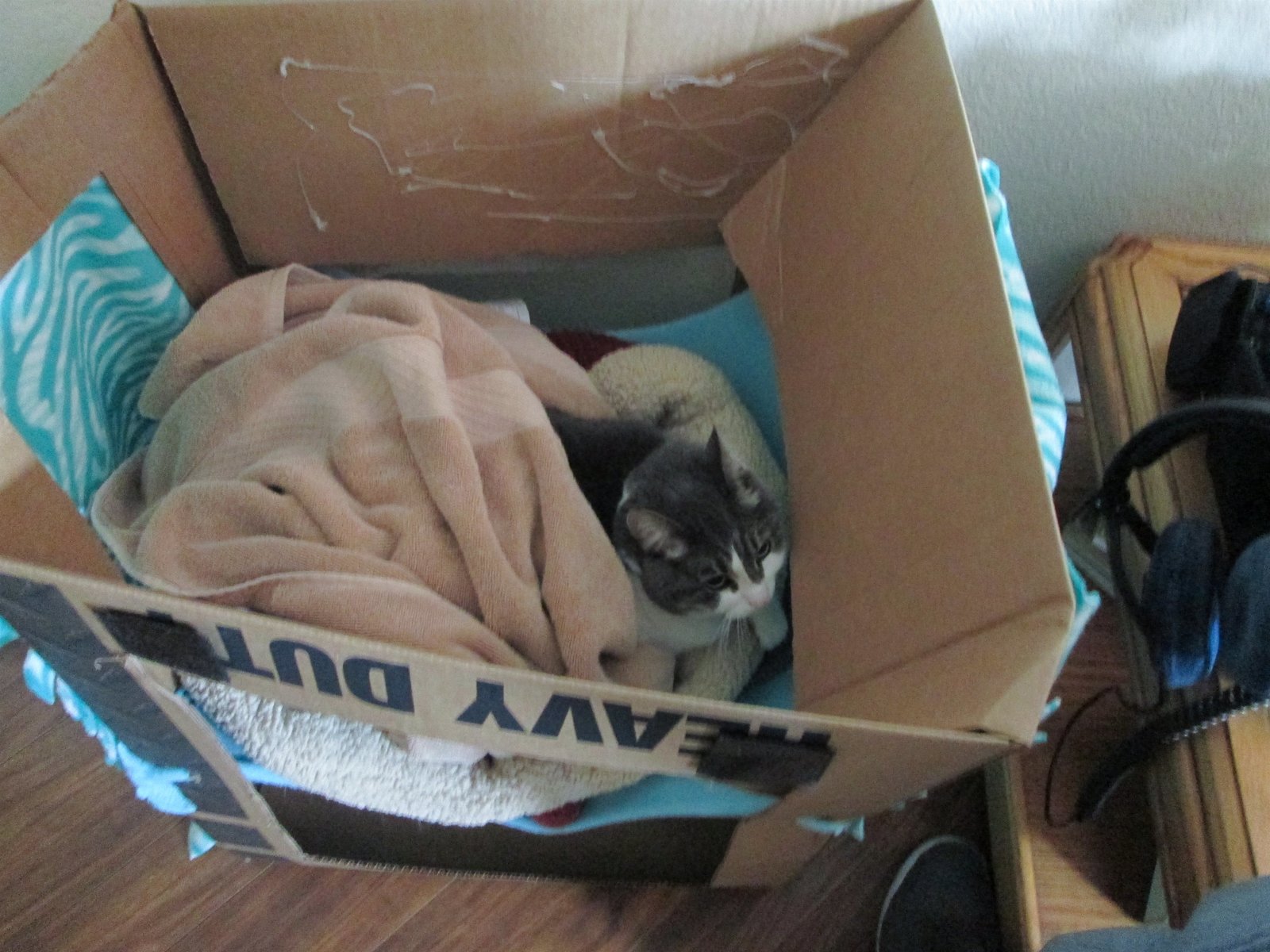 Tweets und TerrorStorm laying in its kitty box.Bild: © TLC