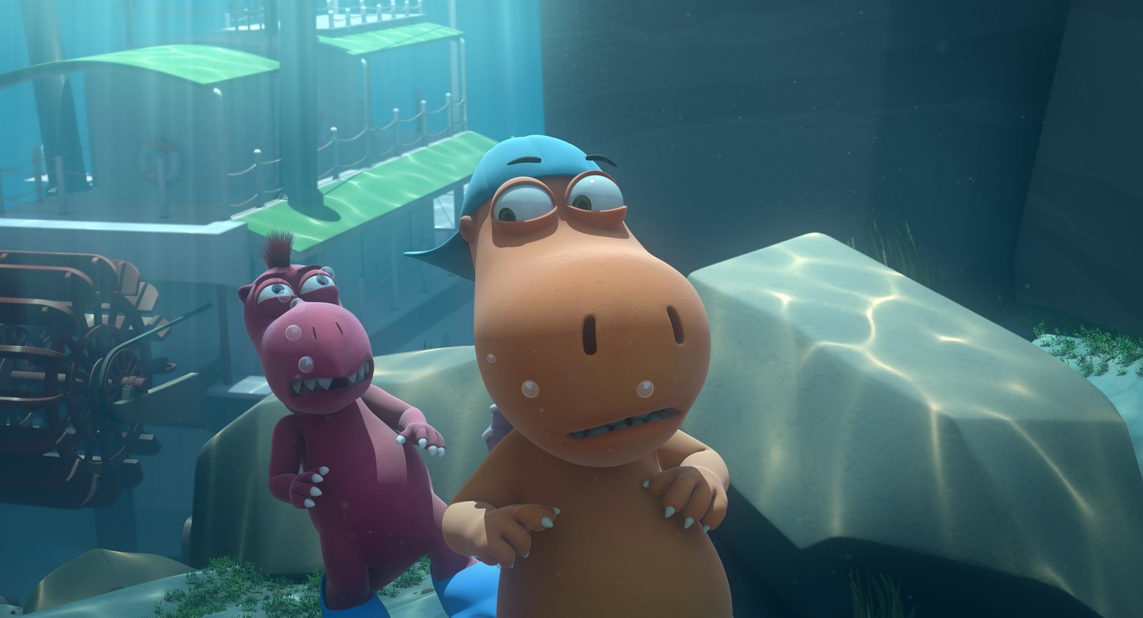 Nachdem ihr Dampfer auf den Meeresgrund gesunken ist, tauchen Oskar und Kokosnuss noch einmal in die Tiefe hinab, um nach ihrer Freundin Matilda zu suchen.Bild: © ZDF und Caligari Film.
